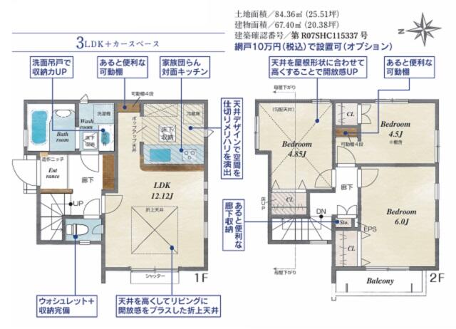 間取詳細 | LDK12.1帖 1階 1部屋 , 洋室6帖 2階 1部屋 , 洋室4.8帖 2階 1部屋 , 洋室4.5帖 2階 1部屋 | ||