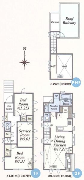 間取詳細 | LDK17.2帖 2階 1部屋 , 洋室7.3帖 1階 1部屋 , 洋室5.2帖 1階 1部屋 , S5帖 1階 1部屋 | ||