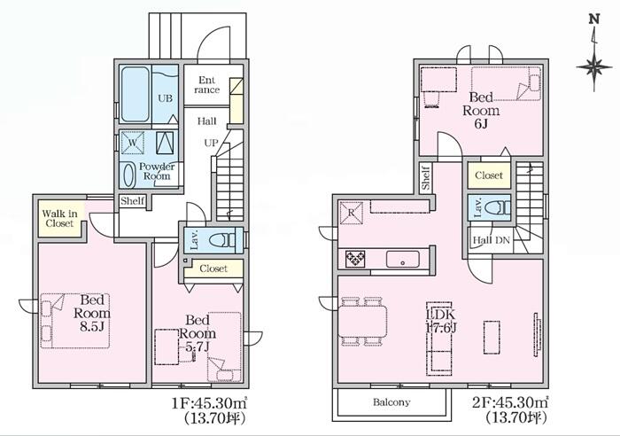 間取詳細 | LDK17.6帖 2階 1部屋 , 洋室8.5帖 1階 1部屋 , 洋室6帖 2階 1部屋 , 洋室5.7帖 1階 1部屋 | ||