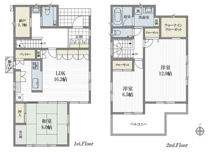 | 間取詳細 | LDK16.2帖 1階 1部屋 , 洋室12帖 2階 1部屋 , 和室8帖 1階 1部屋 , 洋室6.5帖 2階 1部屋 | ||