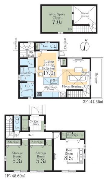 | 間取詳細 | LDK17帖 2階 1部屋 , 洋室8.5帖 1階 1部屋 , S5.3帖 1階 1部屋 , S5.3帖 1階 1部屋 | ||