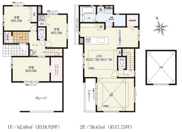 | 間取詳細 | LDK25.1帖 2階 1部屋 , 洋室9帖 1階 1部屋 , 洋室5.2帖 1階 1部屋 , 洋室5帖 1階 1部屋 | ||