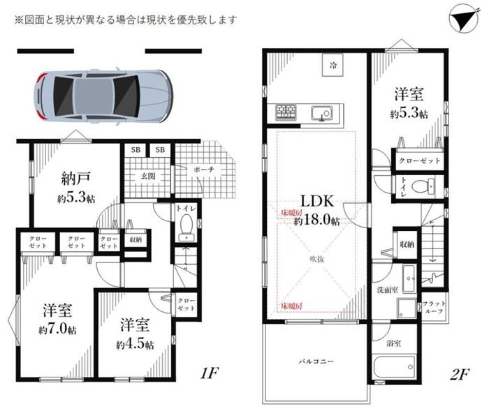 | 間取詳細 | LDK18帖 2階 1部屋 , 洋室7帖 1階 1部屋 , 洋室5.3帖 2階 1部屋 , 洋室4.5帖 1階 1部屋 , S5.3帖 1階 1部屋 | ||