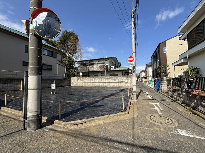 最寄り駅徒歩約10分。約50坪のまとまった土地。南東角地で陽当たり通風良好。