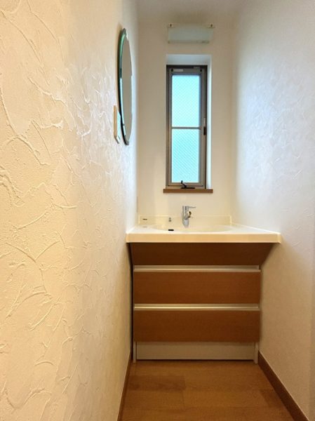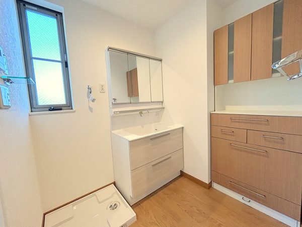 2階洋室は12帖にWIC完備。洗面室には備え付けの