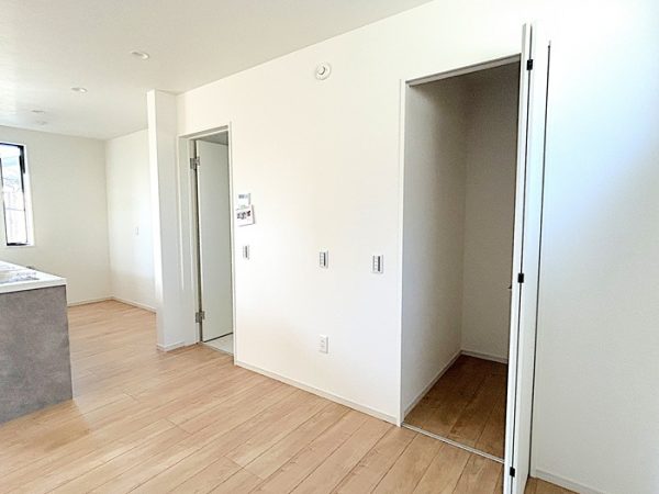 キッチン脇にもリビング空間があり備蓄倉庫も備えられています |